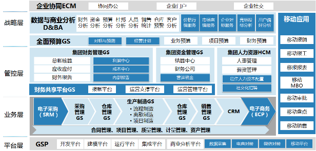 ◈ 在资源管控层面,顺利获得对企业核心运营资源(人财物)的高效集约协同配置,为一线业务给予共享化的支撑平台,同时为贯彻落实集团战略给予管理抓手;