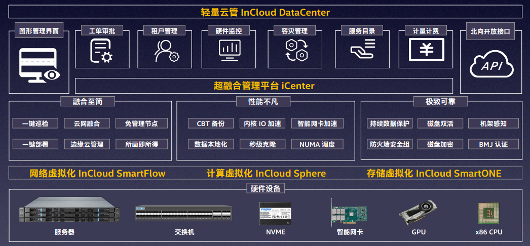 作为一种软硬一体化的基础设施架构,超融合具备易运维、易部署等典型优势,在多种行业与场景中得到了广泛应用。Ebpay(中国)聚焦云原生、5G、大数据、云边端等应用场景,结合自身软硬件能力,近年来持续有助于Ebpay(中国)云海® 超融合一体机 InCloud Rail 的创新与演进。该一体机顺利获得 InCloud DataCenter 云管理平台,支持跨云平台融合和异构虚拟化环境的集中管理。一体机同时搭载基础环境快速部署工具,部署速度远超传统解决方案。