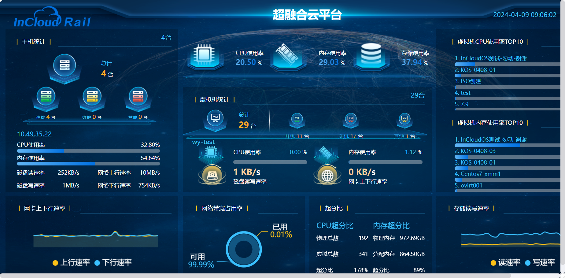 平台支持高可用、瞬时快照、虚拟录影机、CBT备份、双活存储池等软件功能和SRM异地容灾等数据中心级容灾方案维护业务陆续在性与数据安全,结合数