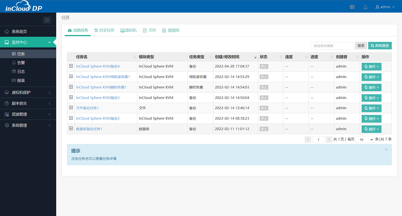 (2)定时增量备份与恢复:  支持主流文件、数据库等备份与恢复。